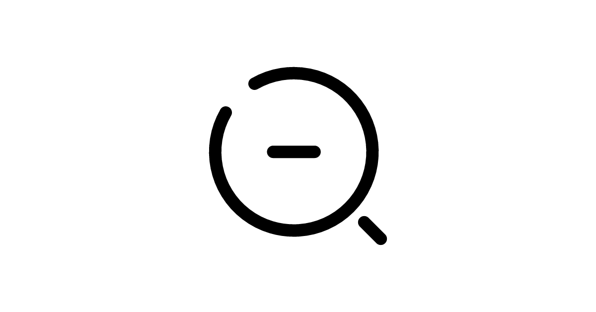 The minimalistic magnifier zoom out broken icon represents a zoom out or search action with a broken or simple line style in digital interfaces.