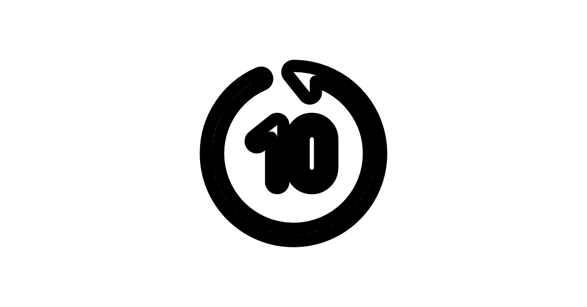 The rewind-10-seconds-back-bold icon represents a bold, forward-facing rewind action for media playback, specifically rewind 10 seconds back.