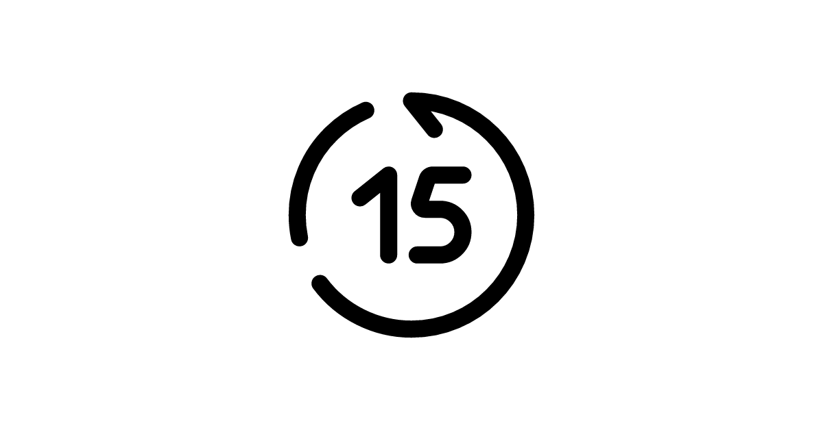 The rewind-15-seconds-back-broken icon represents a rewind button with a 15-second back feature that is not functioning properly, commonly used in media players to indicate an error or issue with navigation.
