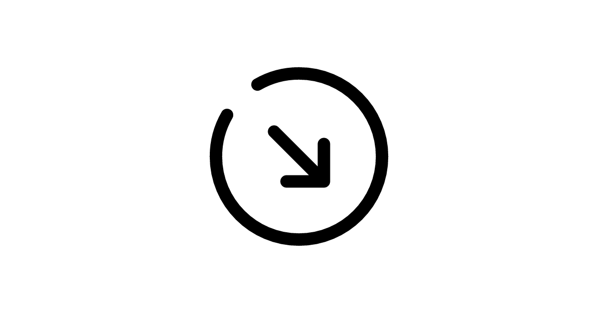 The round-arrow-right-down-broken icon represents a broken or interrupted right-pointing and downward-pointing arrow with rounded edges, often used to indicate an error, disconnection, or interruption in navigation.