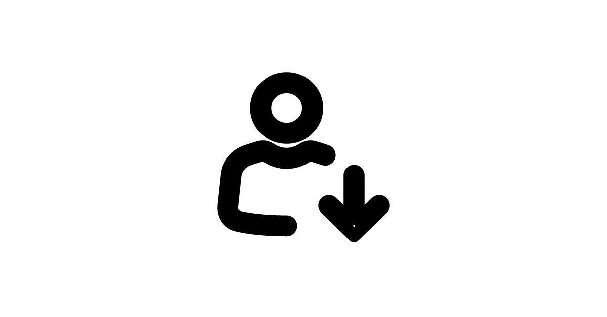 The user-arrow-down-light icon represents a stylized user with an arrow pointing downwards, often used to signify a dropdown or more options.