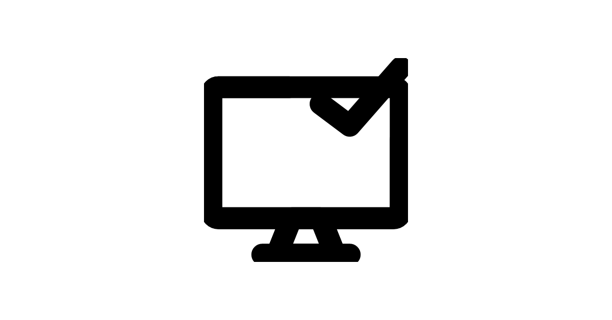 The desktop-check icon represents a checked or verified desktop computer.