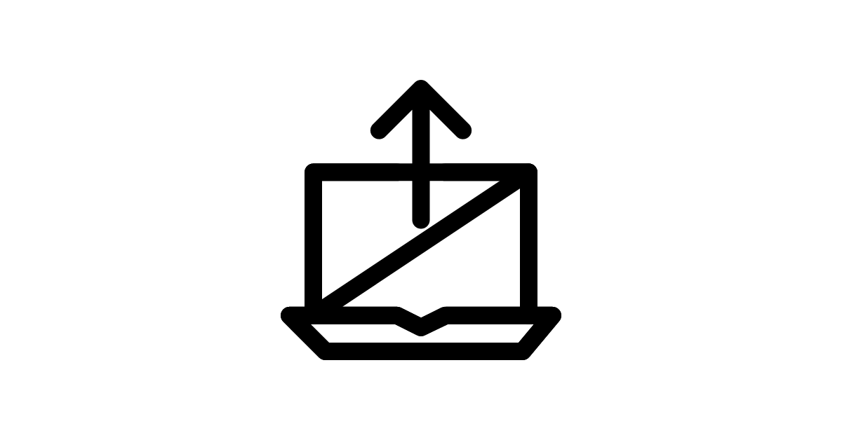 The laptop-upload icon represents the action of uploading data from a laptop, symbolizing data transfer or sharing.