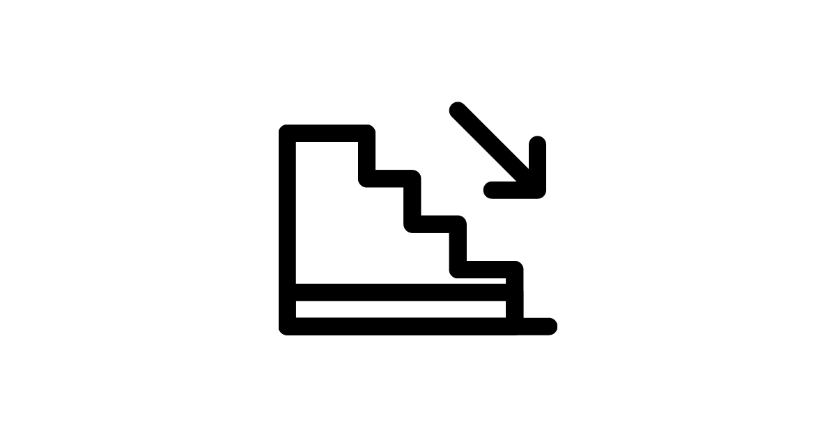 The staircase-down-2 icon represents a staircase leading downwards, often used to symbolize navigation and movement to lower levels or previous steps.