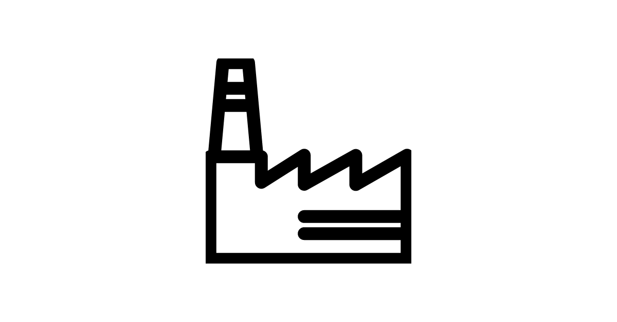 The factory icon represents an industrial facility where goods are manufactured or assembled.