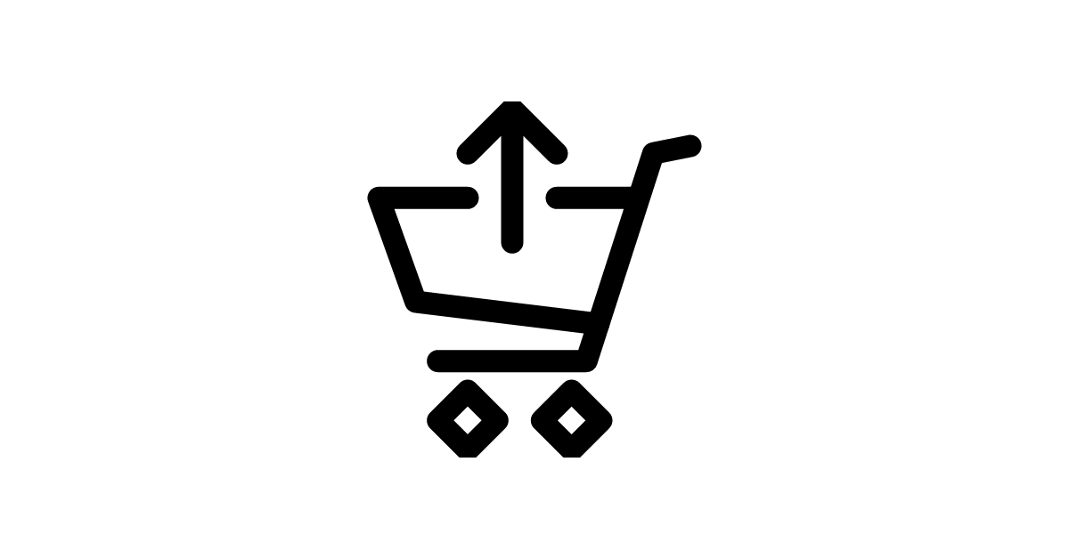 The shopping-cart-upload-2 icon represents uploading products to a shopping cart or ecommerce application, commonly used to signify the action of adding or uploading items.
