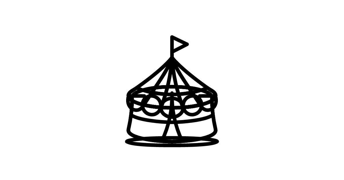 The circus tent icon represents a big top tent used for circus performances, symbolizing entertainment and spectacle.