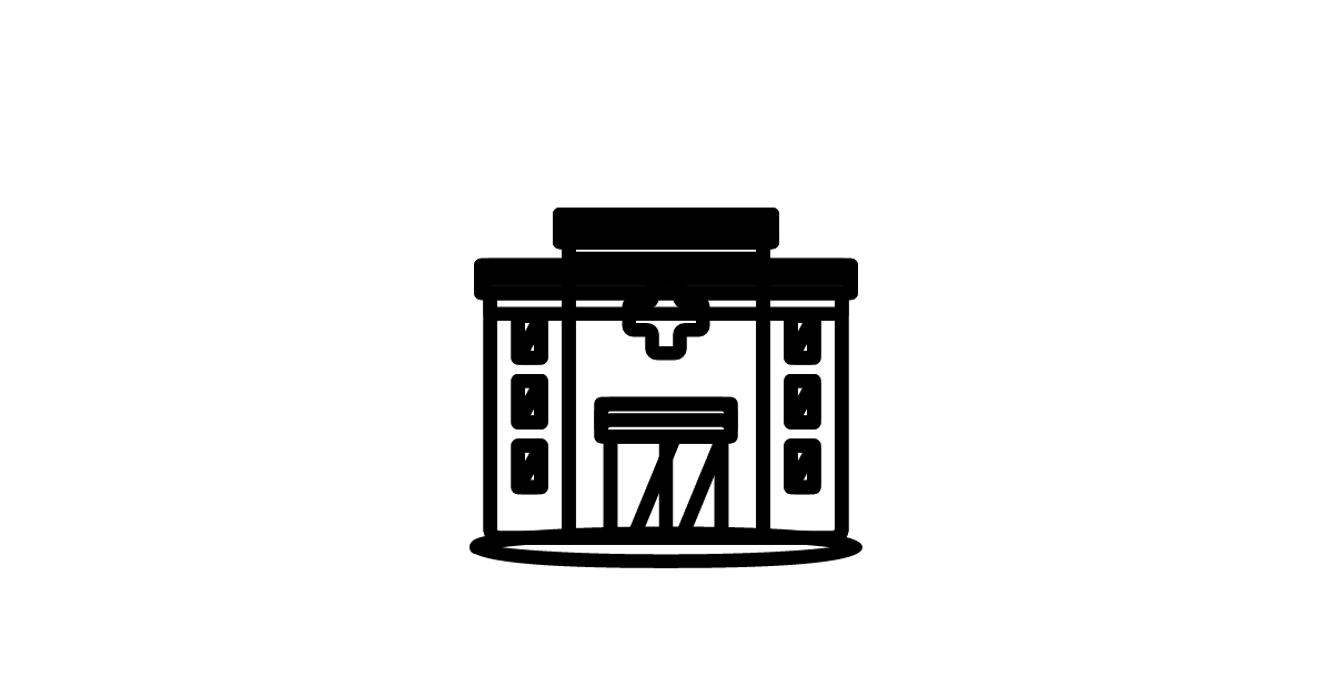 The hospital icon represents a medical building or facility where patients receive treatment.