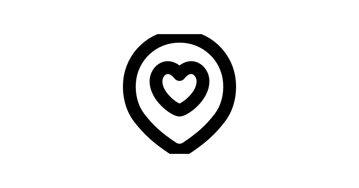 The location-heart-pin-flat icon represents a stylized location marked with a heart, emphasizing simplicity and modern design.