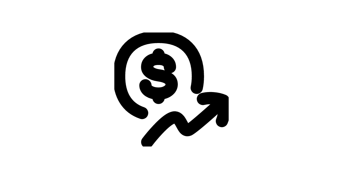 The dollar-increase icon represents a growing amount of money, symbolizing financial growth and profit.