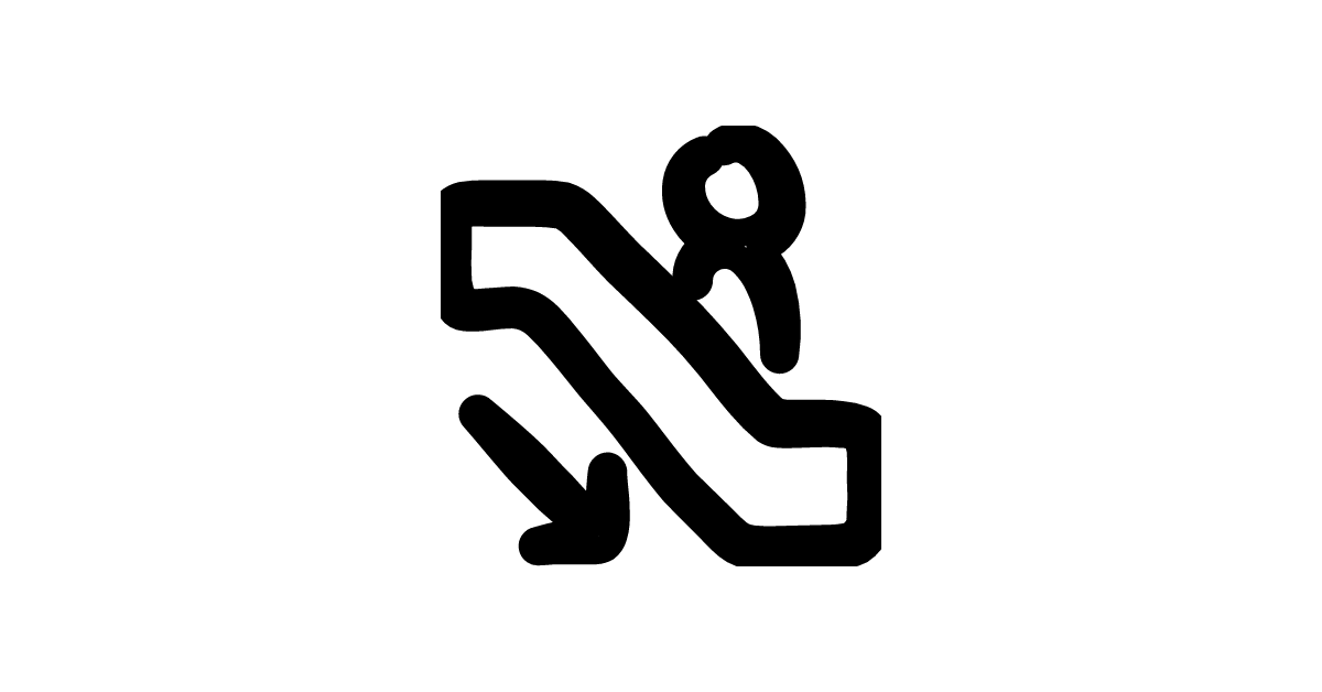 The escalator-descend-person icon represents a person moving downward on an escalator, often used to symbolize downward movement or regression.