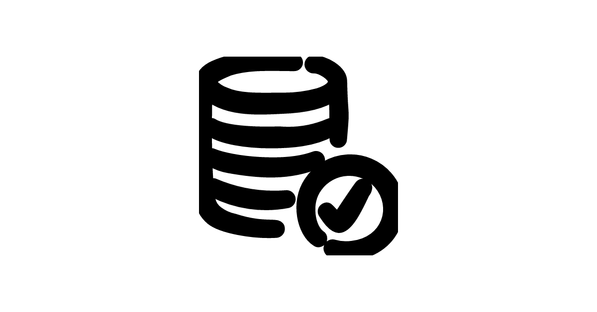The database-check icon represents a validated or verified database, commonly used to indicate data integrity or validation.