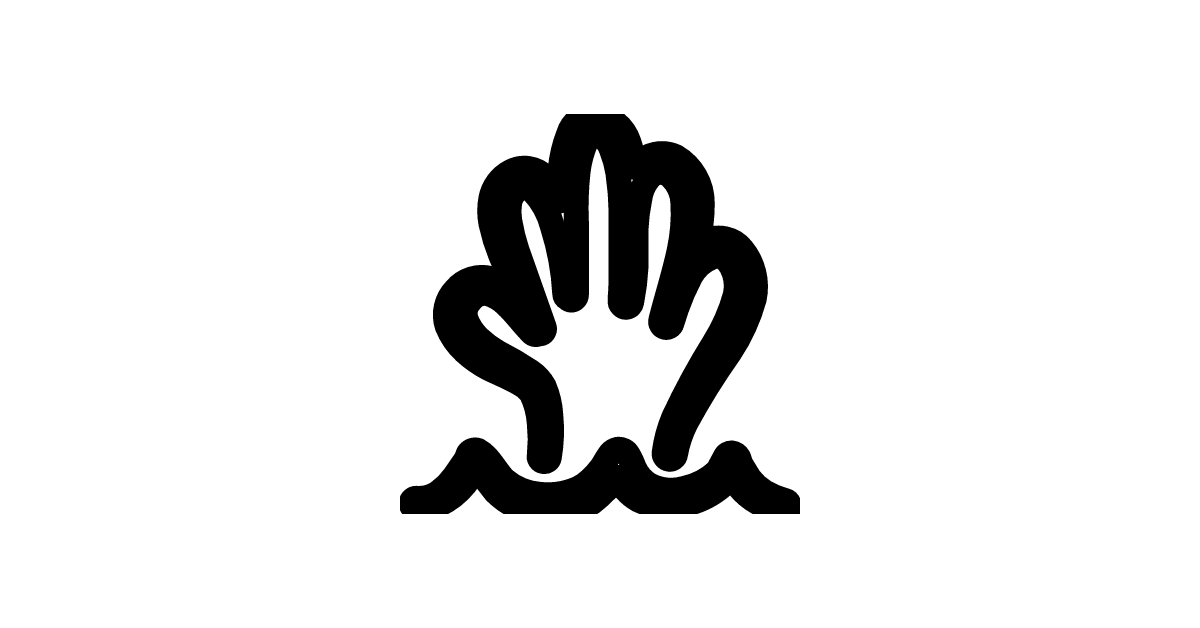 The safety-drown-hand icon represents a warning sign for drowning hazards, indicating potential danger from water or liquids.