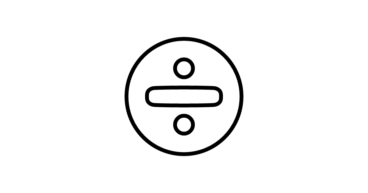The division-circle-flat icon represents a stylized mathematical operation symbol used to indicate division between two quantities in a flat design style.