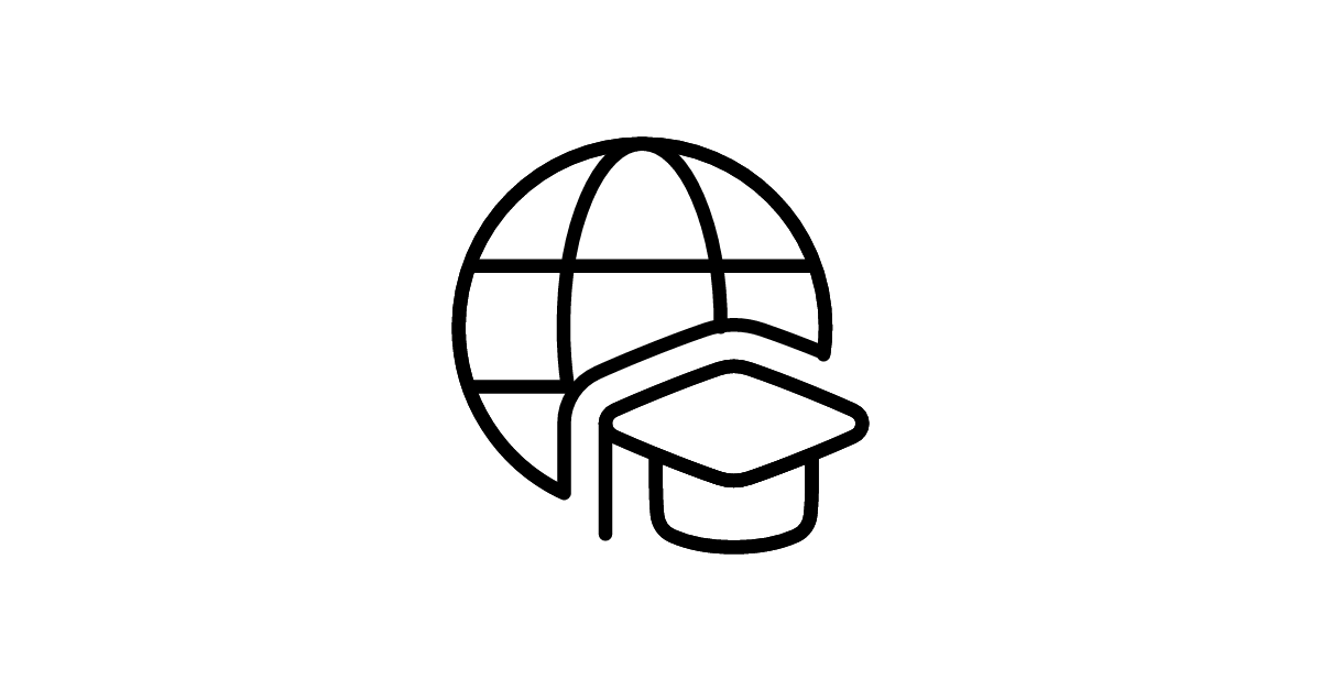 The global-learning icon represents the concept of global education and knowledge sharing, symbolizing the exchange of information and ideas worldwide.