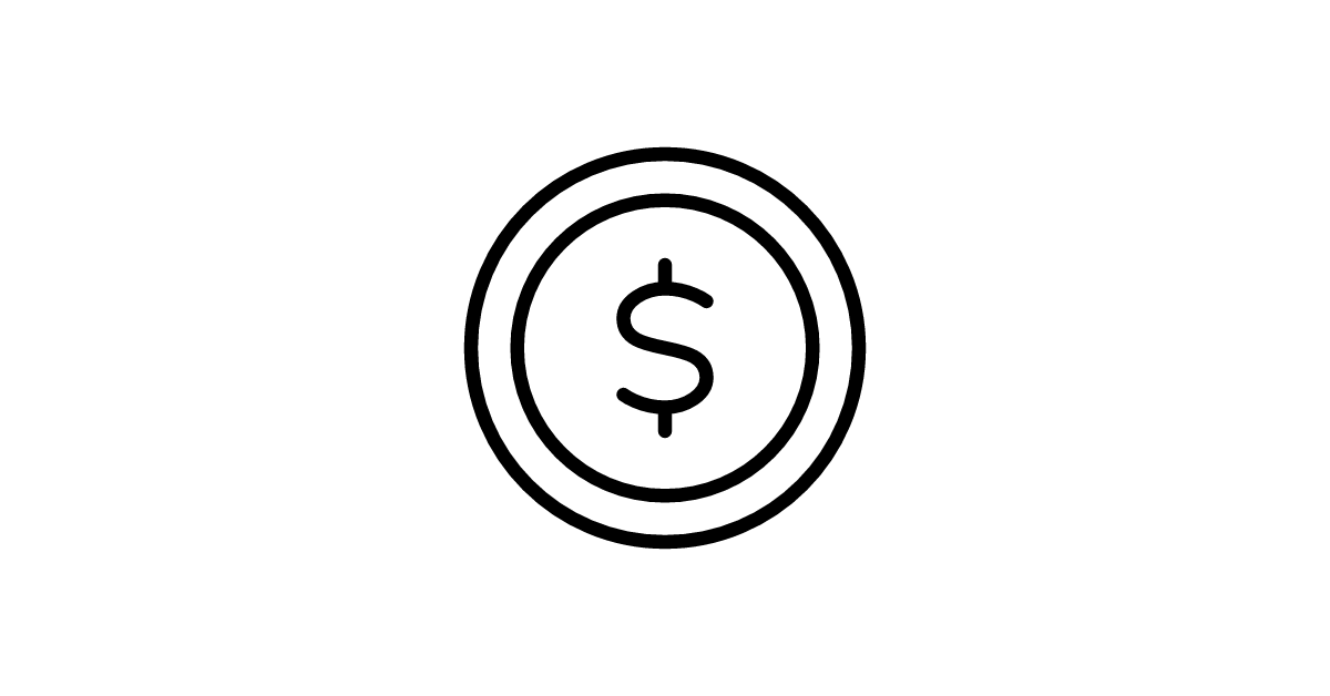 The dollar-coin icon represents a coin with a dollar symbol, commonly used in finance and commerce to signify currency exchange or payment.