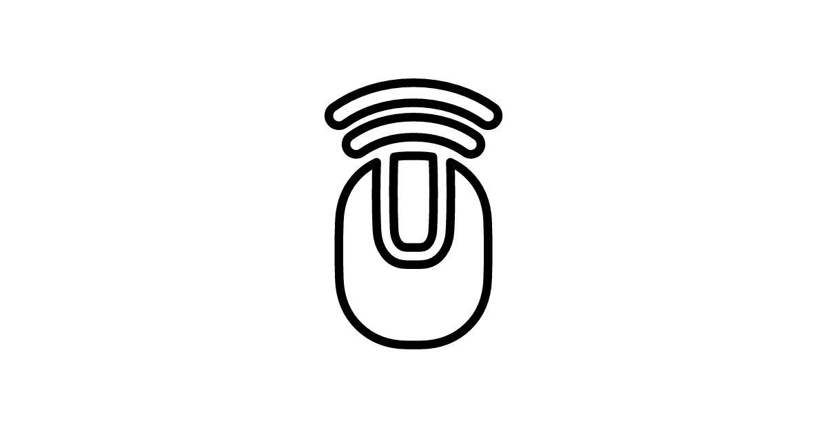 The mouse-wireless-1-solid icon represents a filled, solid style depiction of a wireless computer mouse, often used to convey a sense of device connectivity or computer peripherals.