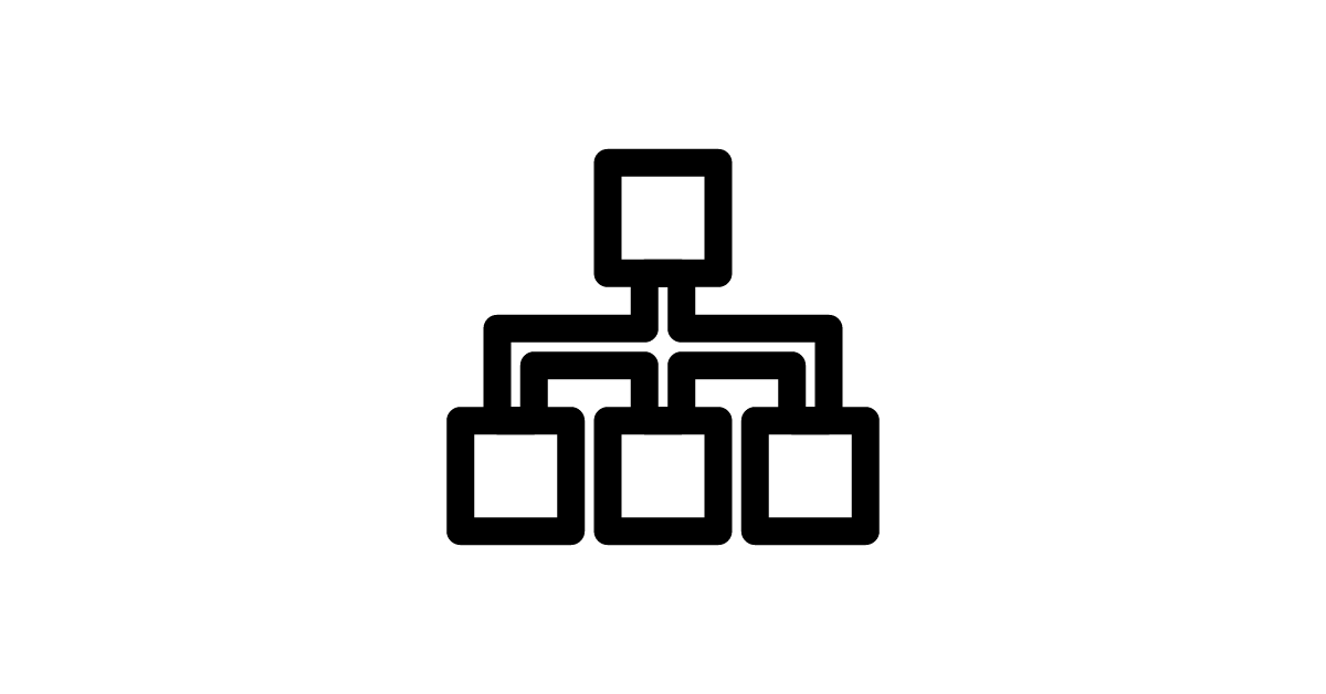The 'hierarchy-2-flat' icon represents a flat design variant of the 'hierarchy-2' icon, used to visualize simple hierarchical structures or organization charts.