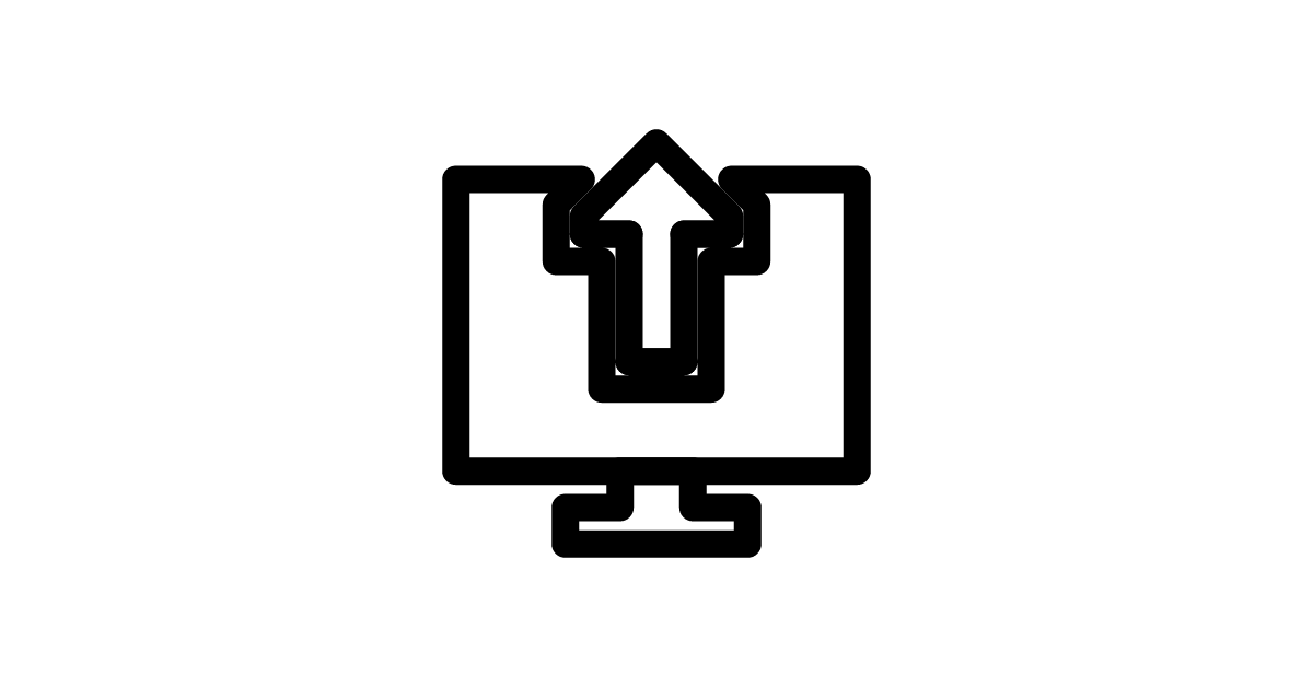The upload-computer-flat icon represents a modern, flat design version of the action of uploading files or data to a computer or cloud storage, symbolizing the process of transferring information.