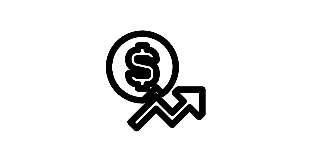 The dollar-increase-solid icon represents a solid version of a combination of a dollar sign and an upward arrow, symbolizing financial growth or increase.