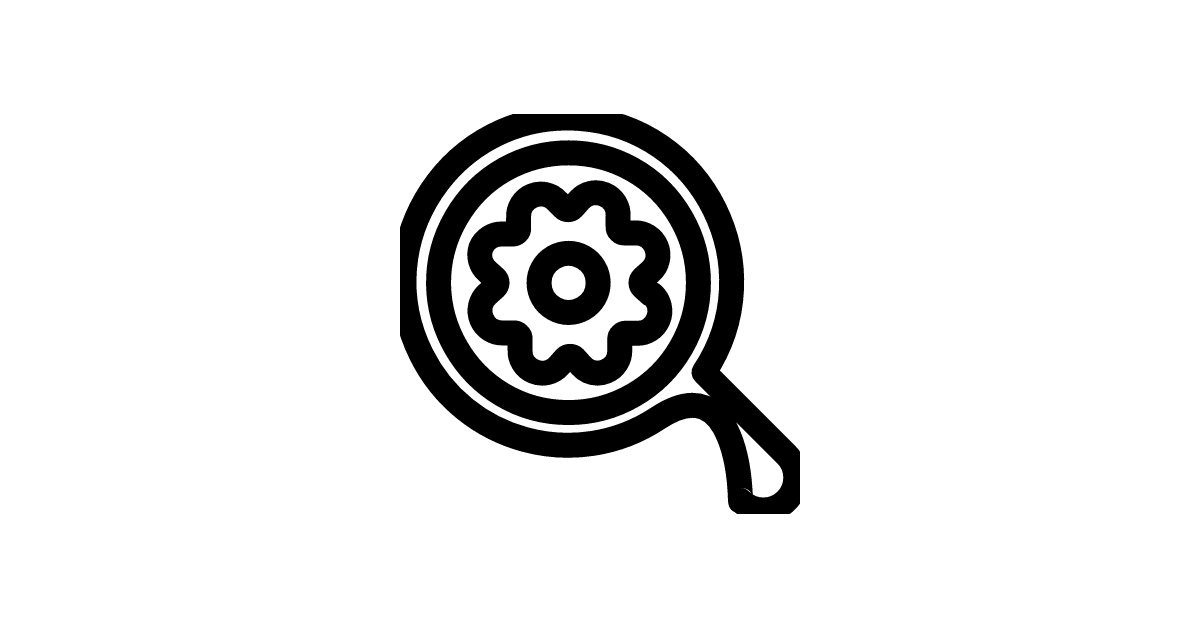 The cog-search-1-bold icon represents a bold or emphasized gear or settings symbol with a search action.