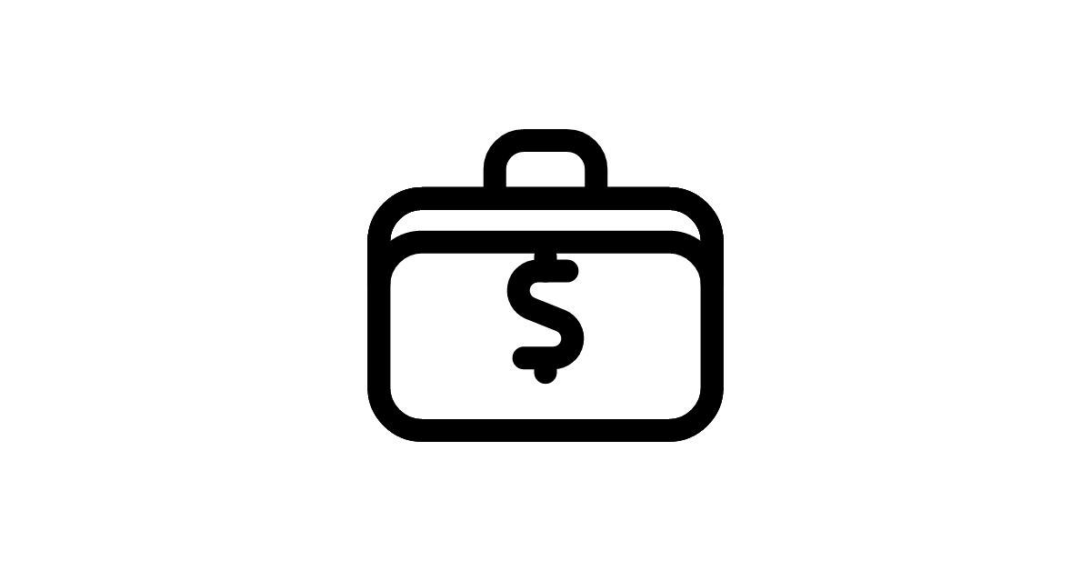 The cash-briefcase icon represents a briefcase filled with cash, symbolizing financial transactions, business, or professional services.