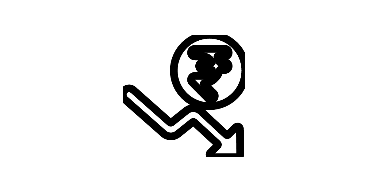 The currency-sign-rupee-decrease-bold icon represents a bold or emphasized decrease in the value of the Indian rupee (INR) currency.