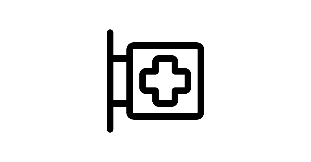 The hospital-sign icon represents a hospital signpost.