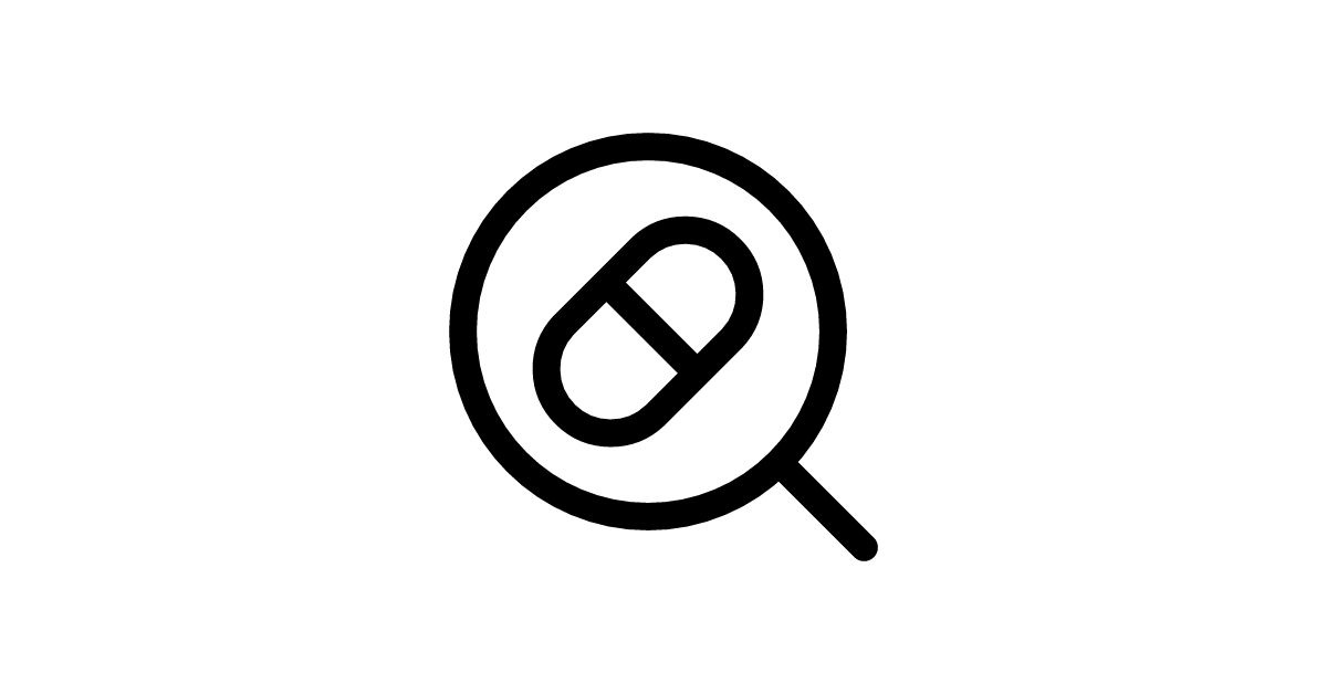 The medicine-search-4 icon represents a search function in the medical field, specifically related to medical research, pharmacy, and healthcare.