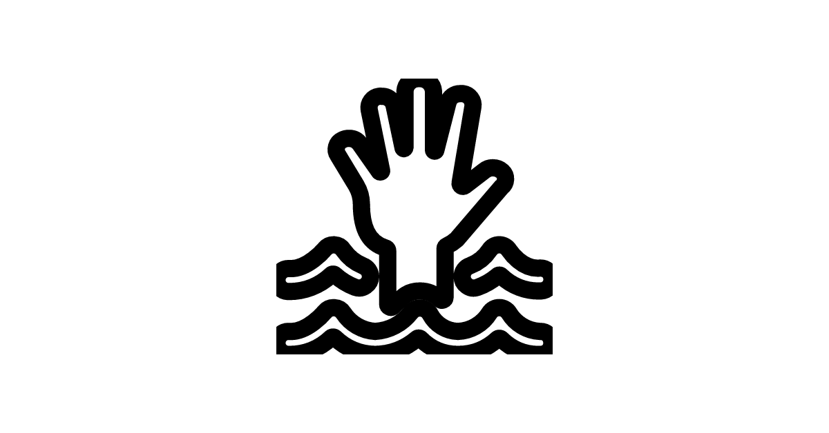 The safety-drown-hand-bold icon represents a person struggling in water, symbolizing emergency and rescue situations.