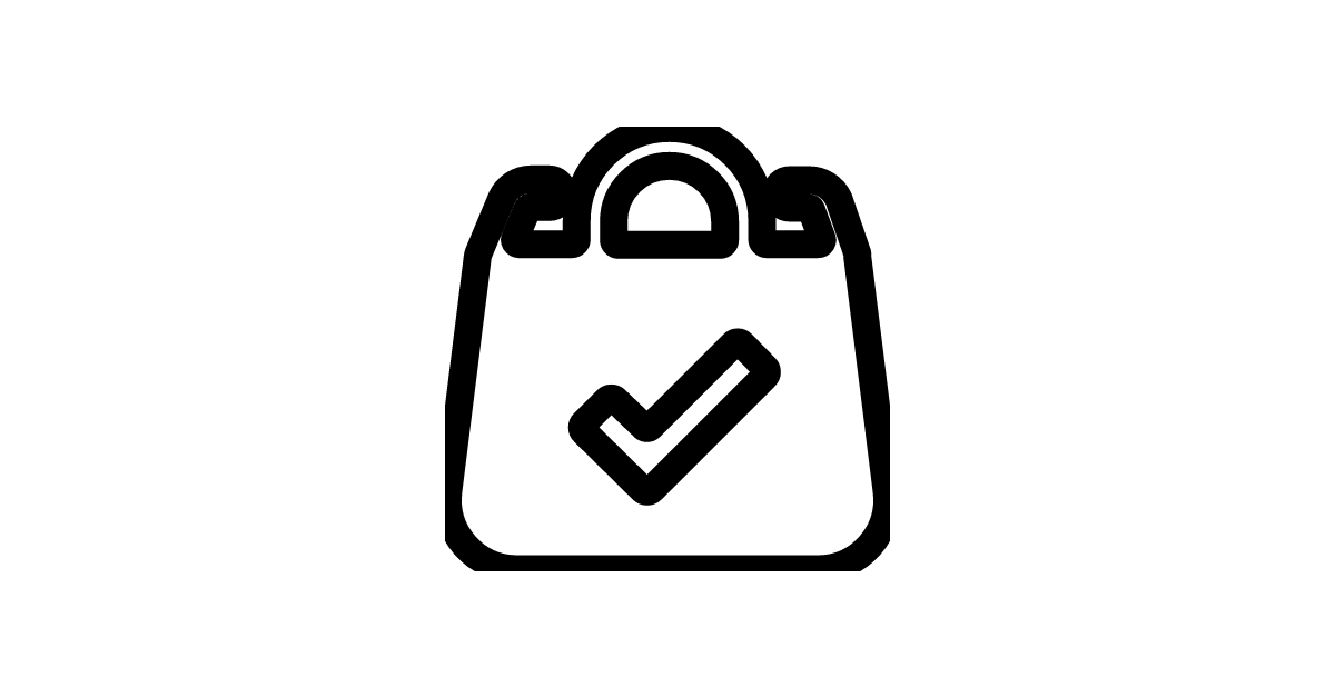 The shopping-bag-check-bold icon represents a bold shopping bag with a checkmark, often used in retail and ecommerce applications to indicate a successful purchase or checkout.