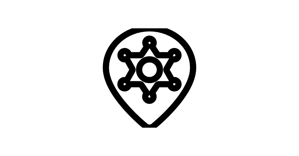 The style-three-pin-police-badge-bold icon represents a bold police badge with three pins, symbolizing law enforcement and security.