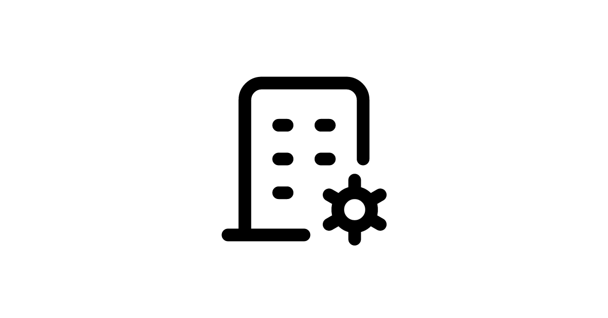 The building-cog icon represents a gear or cog often found in mechanical and industrial contexts.