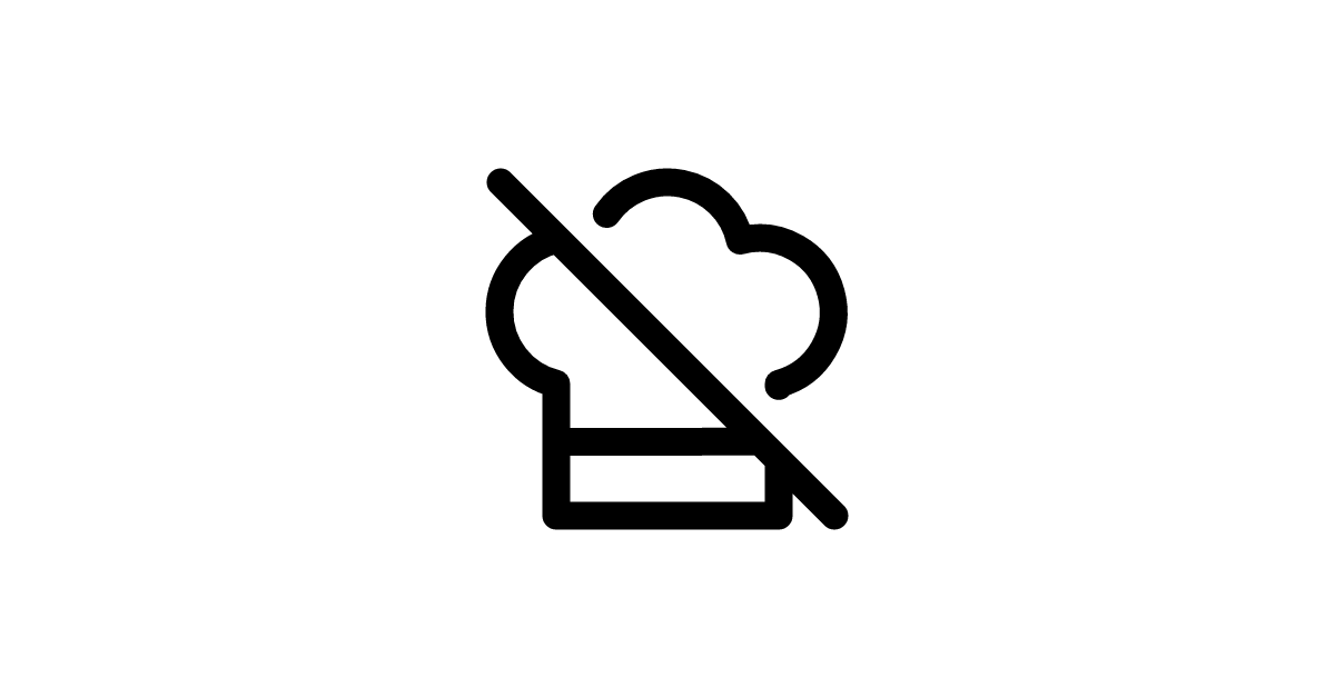 The 'chef-hat-off' icon represents a chef's hat with a line through it or an 'off' symbol, often used to indicate a chef or cooking-related service that is unavailable or disabled.