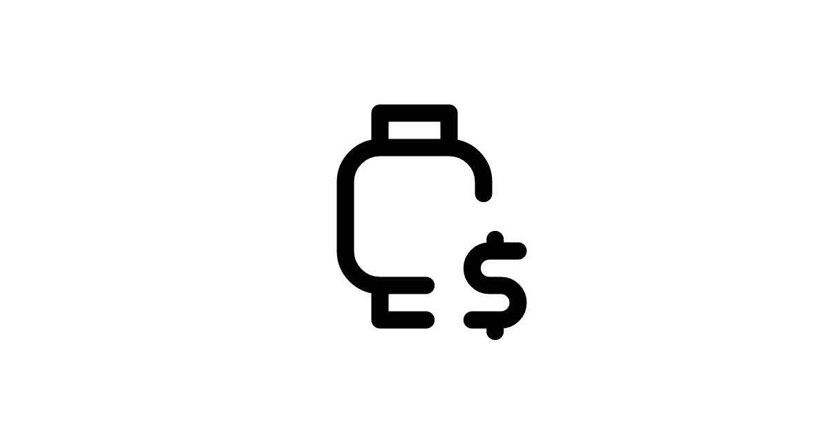 The device-watch-dollar icon represents a smartwatch with a dollar sign, indicating financial transactions, payments, or currency exchange on wearable devices.