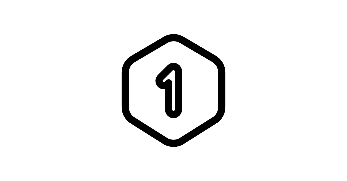 The hexagon-number-1-filled icon represents a filled hexagon shape with the digit '1' inside, providing a more solid visual presence for labeling or indexing items.