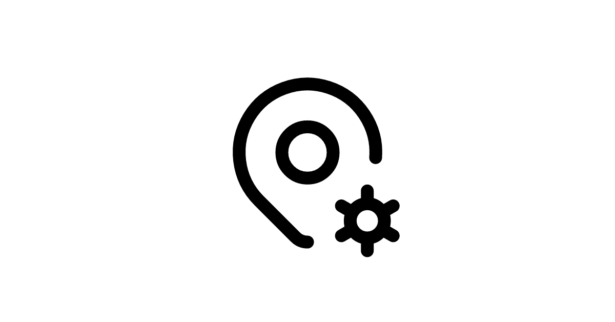 The map-pin-cog icon represents a location or map pin with a settings or cogwheel element, symbolizing the configuration or management of a specific location or point of interest.