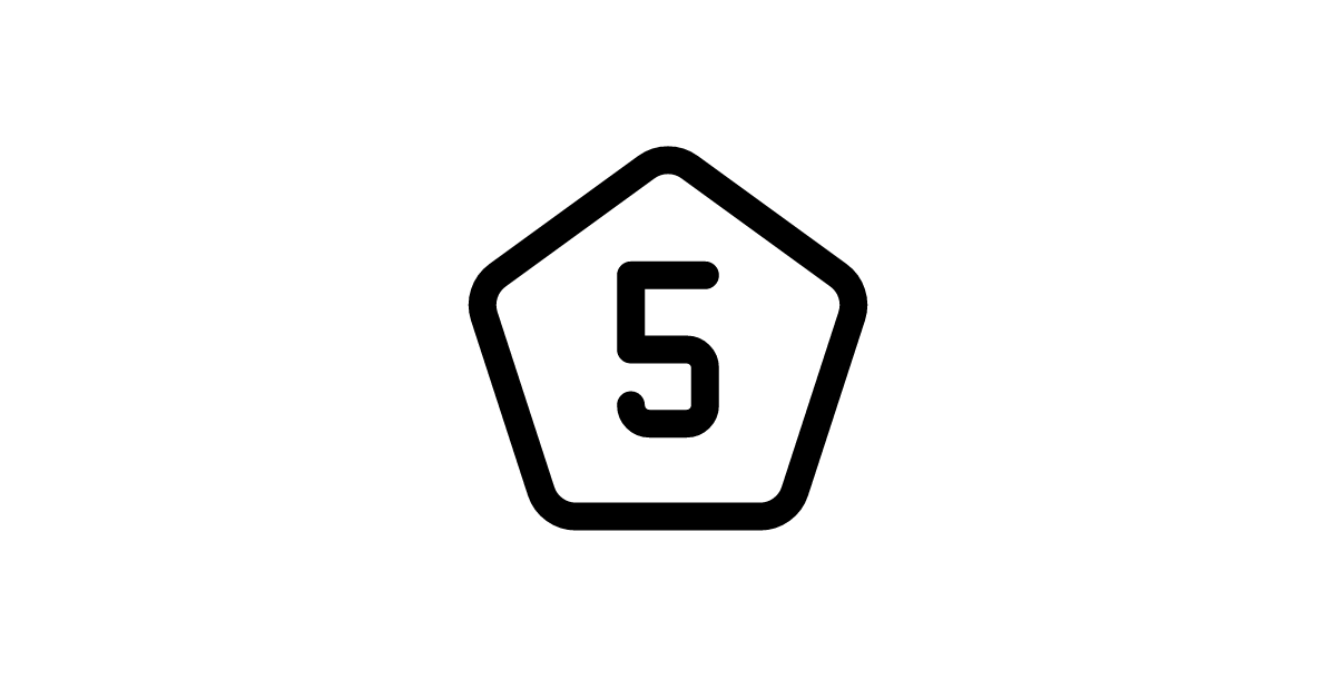 The pentagon-number-5 icon represents a polygon with five sides and the number 5, commonly used in design and UI.