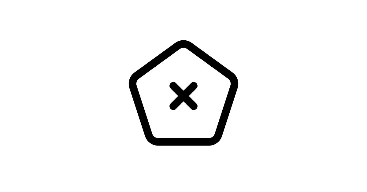 The pentagon-x icon represents a pentagon shape with an 'x' or cross through it, often used to indicate deletion, cancellation, or rejection.