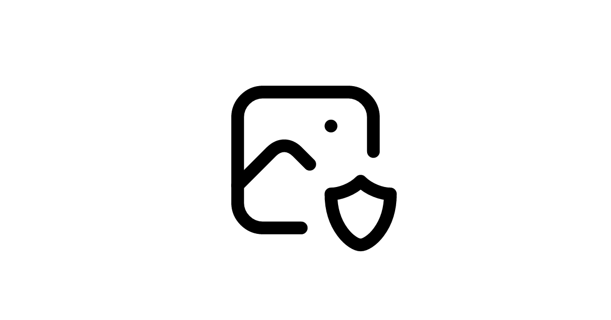 The photo shield icon represents protection or security measures applied to photos or images, possibly related to data protection or intellectual property.