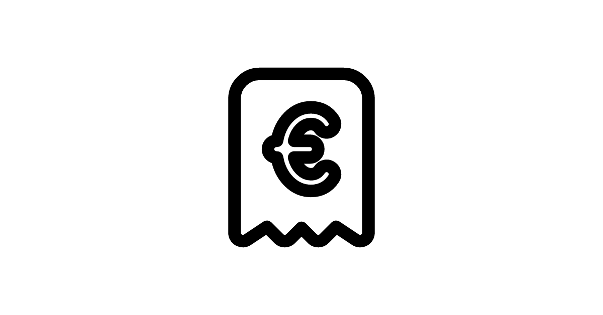 The receipt-euro-filled icon represents a document confirming payment or transaction in euros with a filled design.