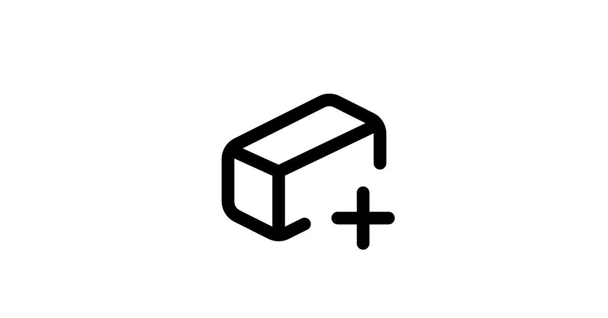 The rectangular prism plus icon represents a three-dimensional solid object with rectangular faces and a plus sign, indicating addition or creation.