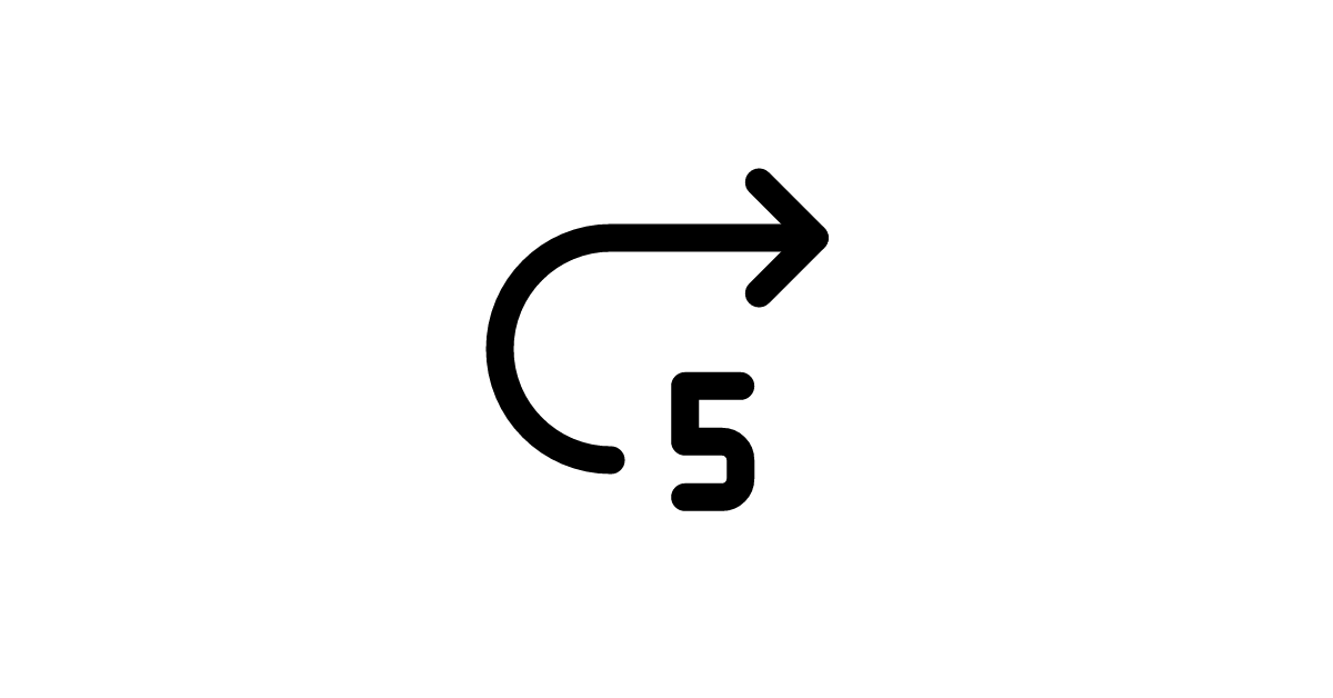 The rewind-forward-5 icon represents a fast-forward media control button, commonly used in digital media players to skip 5 seconds ahead in a video or audio track.