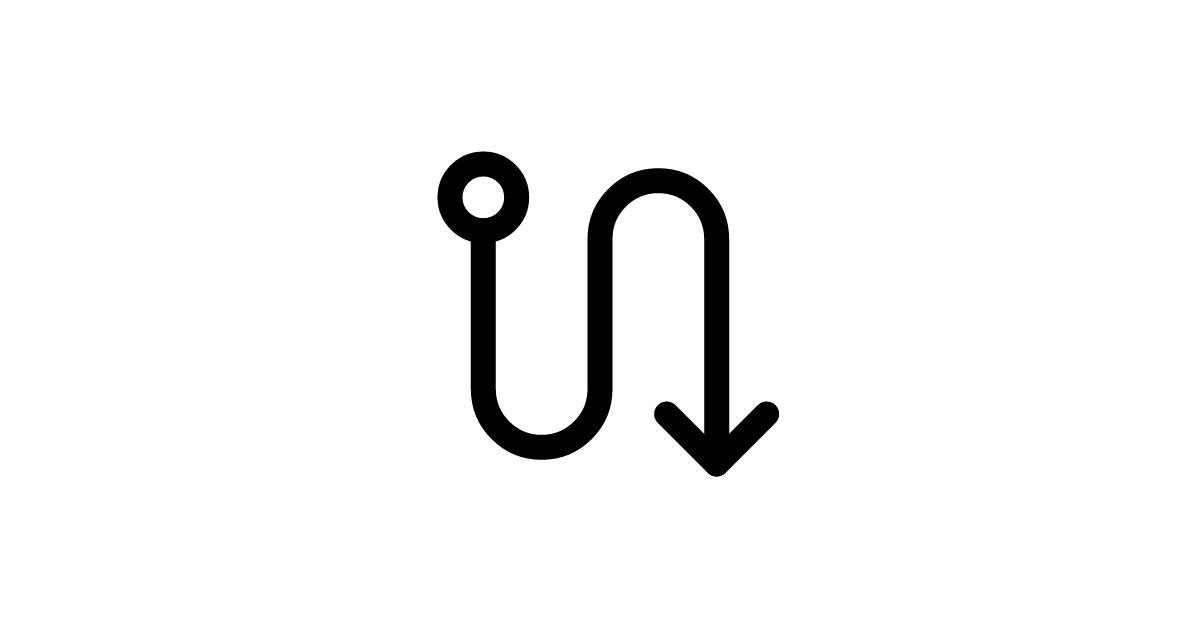 The s-turn-down icon represents a turn or change in direction, specifically a downward turn.