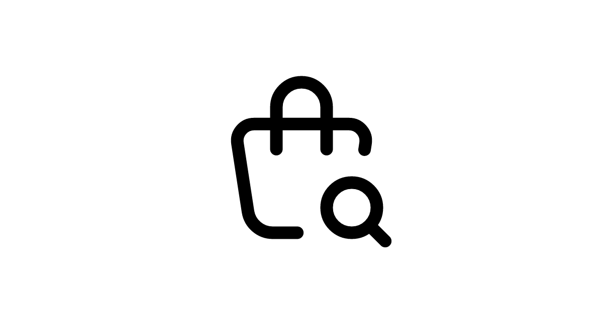 The shopping-bag-search icon represents a shopping bag with a search or find symbol, often used to indicate searching for items in a cart or inventory.