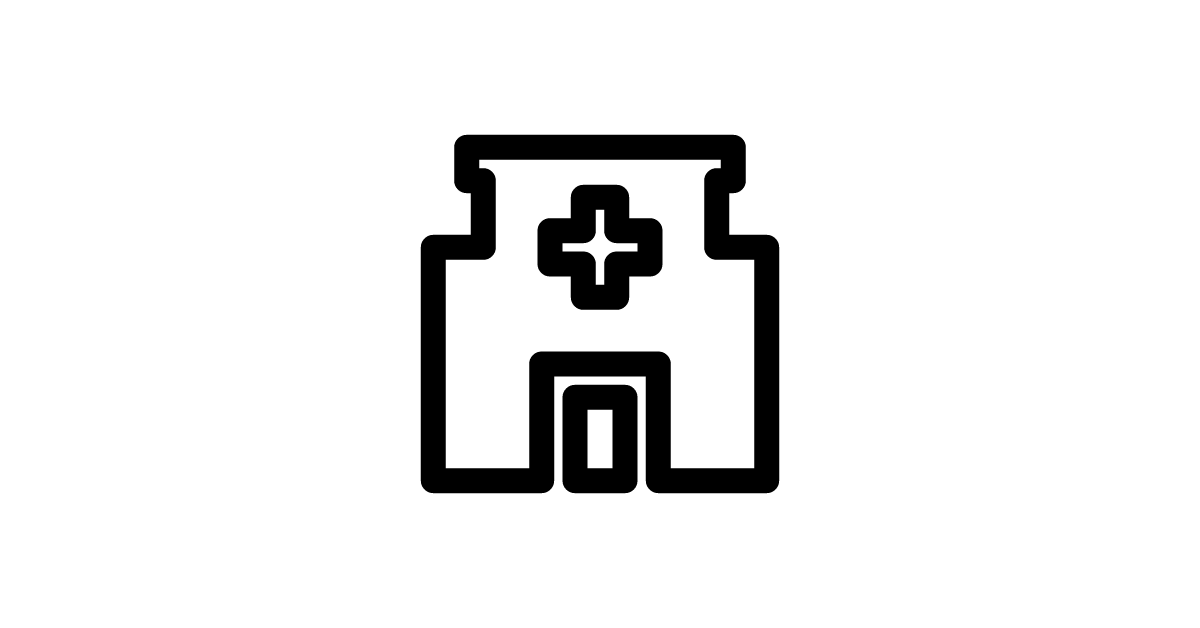 The hospital-filled icon represents a filled hospital symbol, often used in medical and healthcare contexts to signify a place of medical care and treatment.