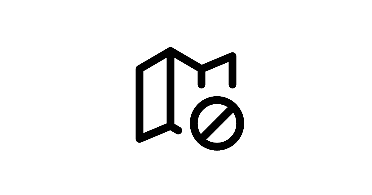 The map-blocked icon represents a blocked or restricted location on a map, used for navigation and geolocation.