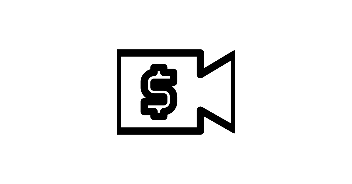 The video-camera-dollar-filled icon represents a filled or solid video recording device associated with financial transactions or monetary gain.