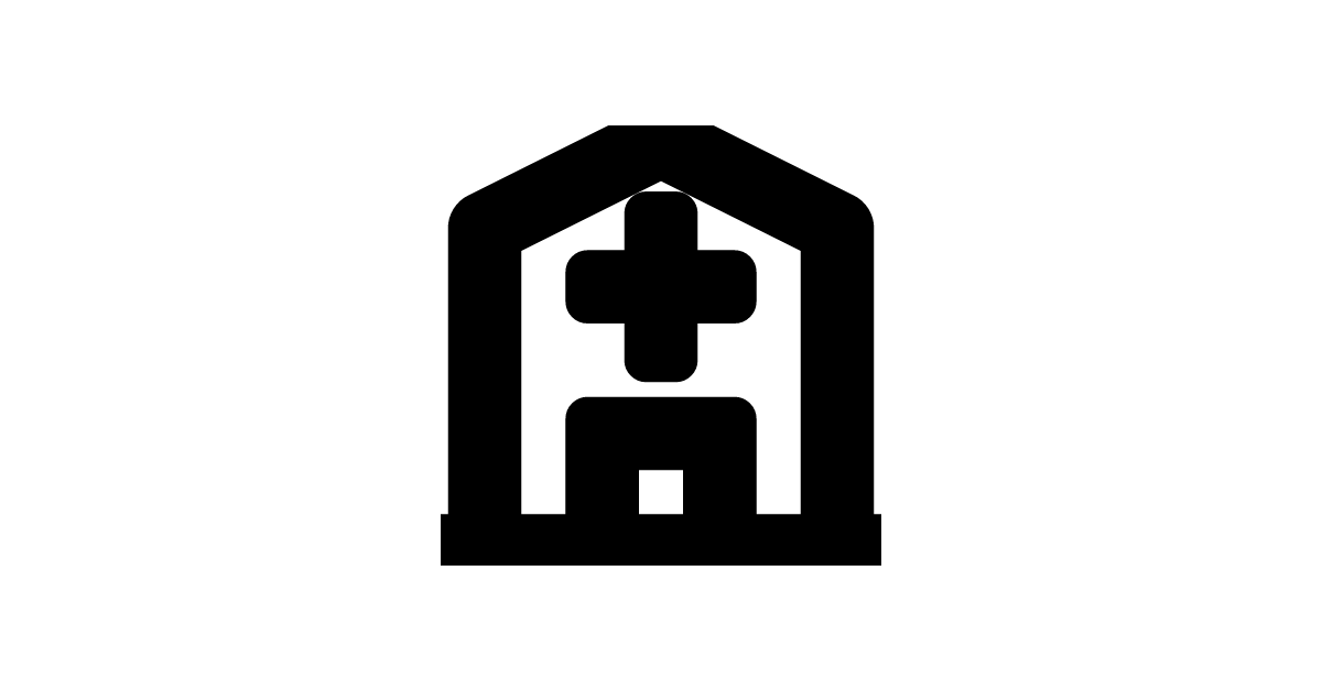 The hospital-outline icon represents a medical facility or hospital, often used in digital interfaces to signify healthcare or medical services.
