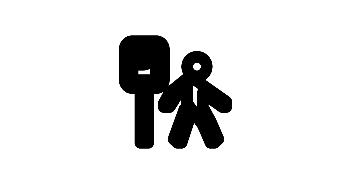 The sign-and-pedestrian icon represents a common combination of a sign and a pedestrian, often seen in outdoor recreational areas, hiking trails, or walking paths.